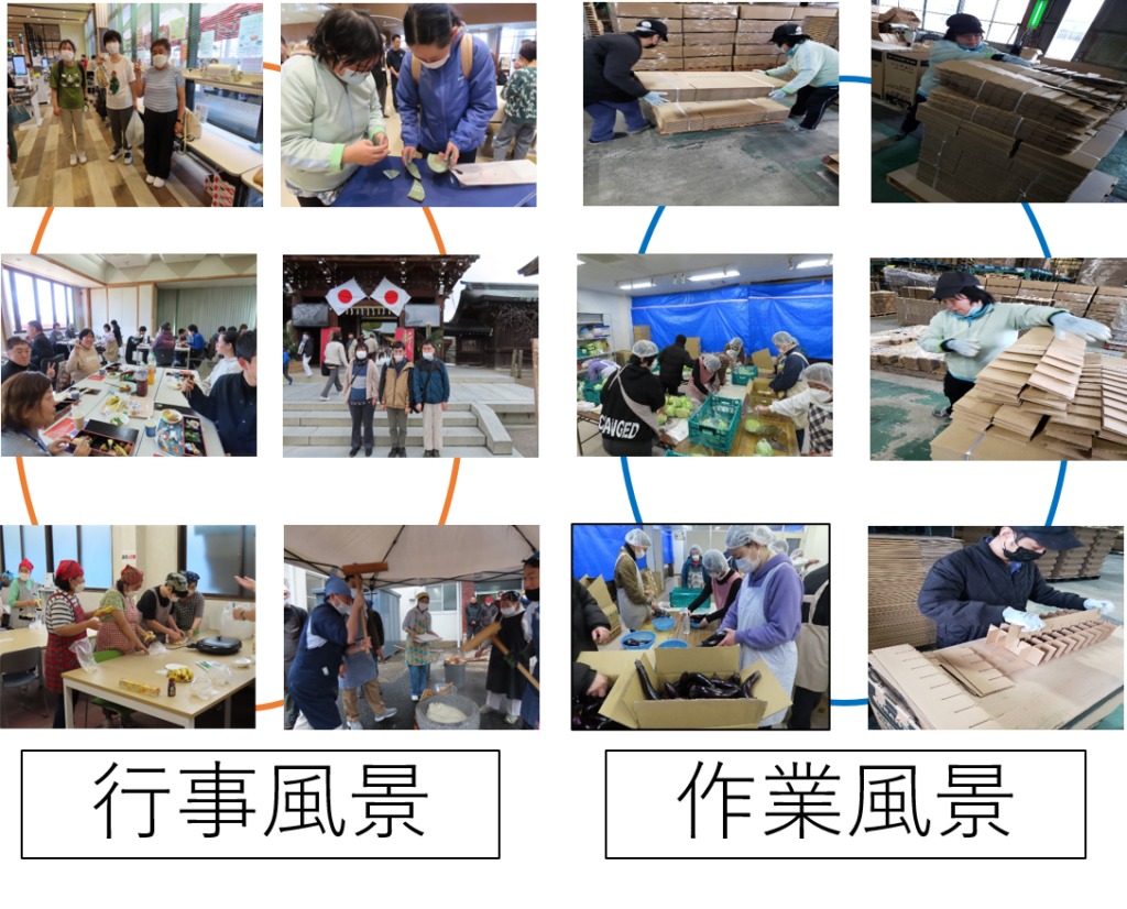 施設外就労(出向作業)・・・段ボールの積荷作業、野菜の計量・袋詰め・袋止め、歯科医院清掃等