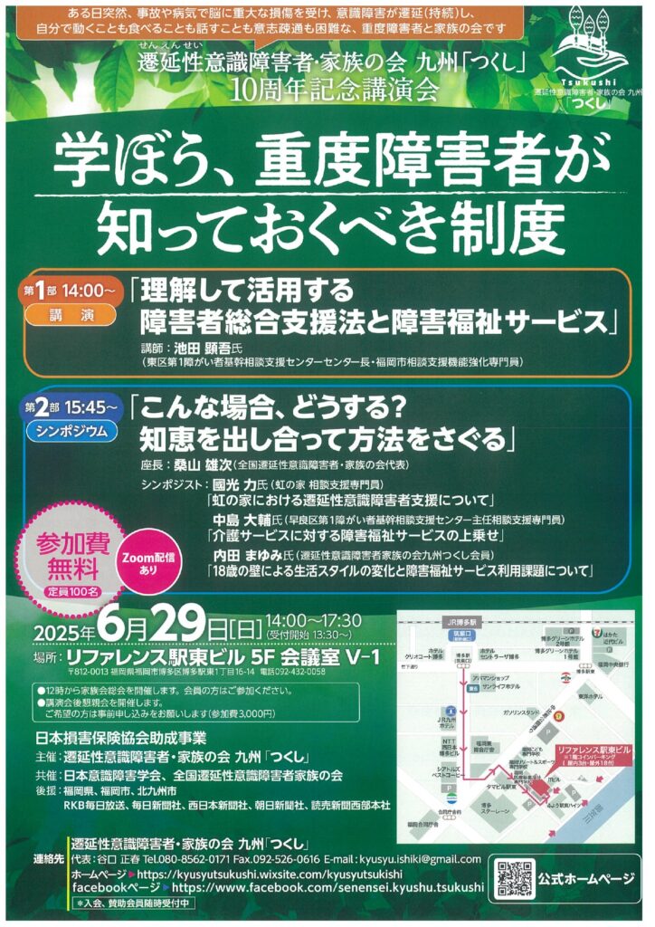 6月29日(日)14時~17時30分に、遷延性意識障害者・家族の会 九州「つくし」主催の